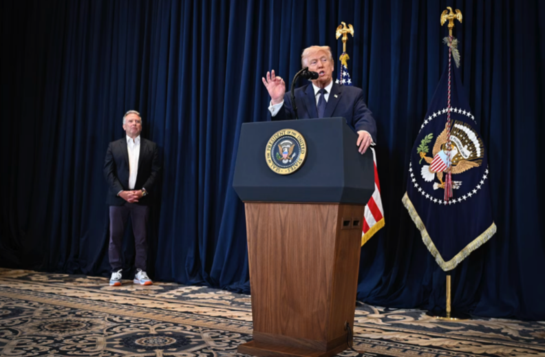 △当地时间3月9日,美国佛罗里达州,特朗普总统就其政府对伊朗的打击行动发表讲话
